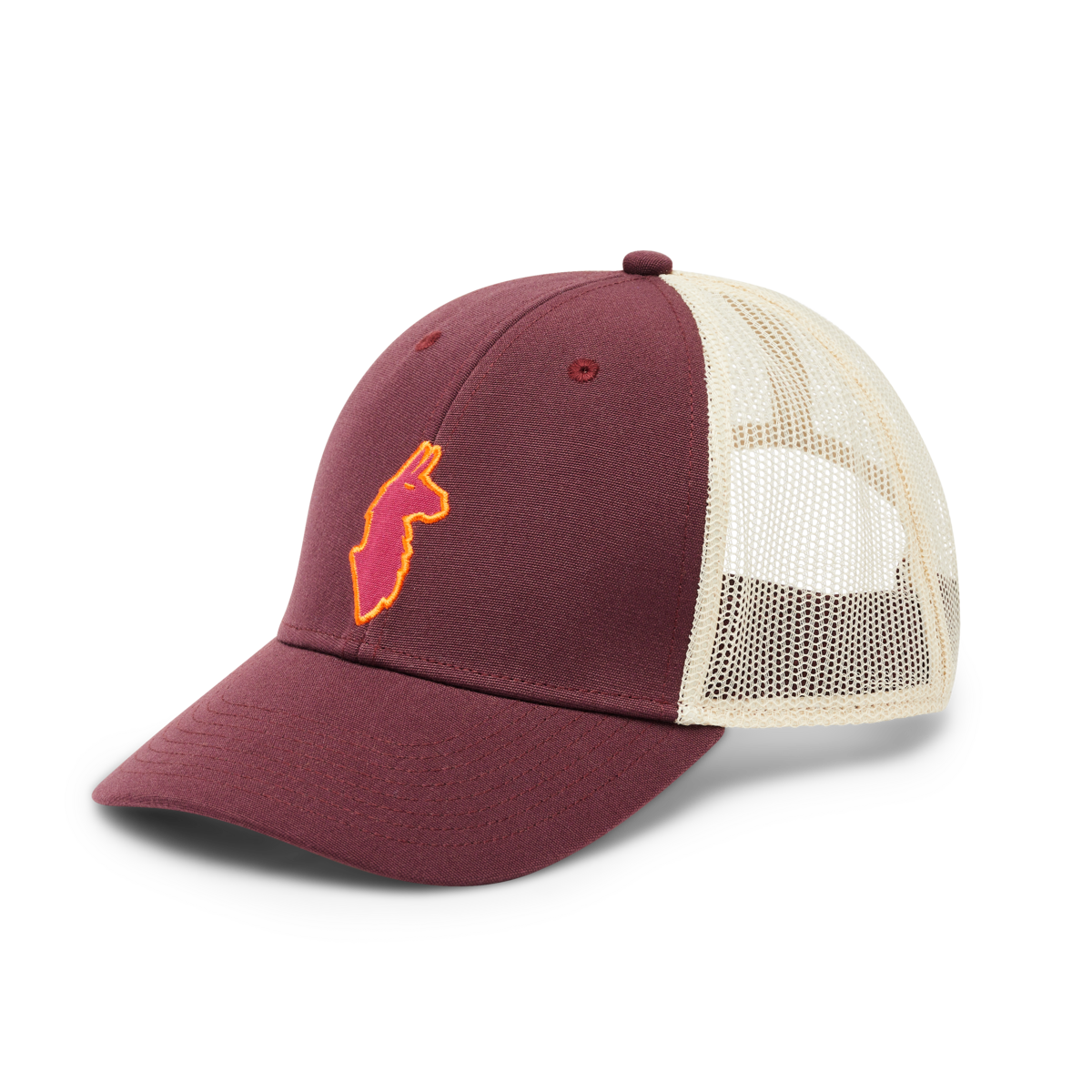 Equipped with a mesh back panel. an adjustable snapback closure. and a woven patch graphic. the Llama Trucker Hat is 100% recycled comfort.
